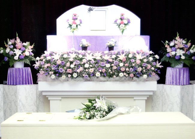 ご家族様のご希望で、無宗教葬でのお見送りでしたので、無宗教祭壇にお花の飾りを組み合わせて祭壇を作成いたしました。