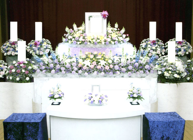 前回と同じ内容にしたいとのご希望でしたので、同じ式場を利用して花祭壇を飾り、無宗教葬でお別れお別れいたしました。